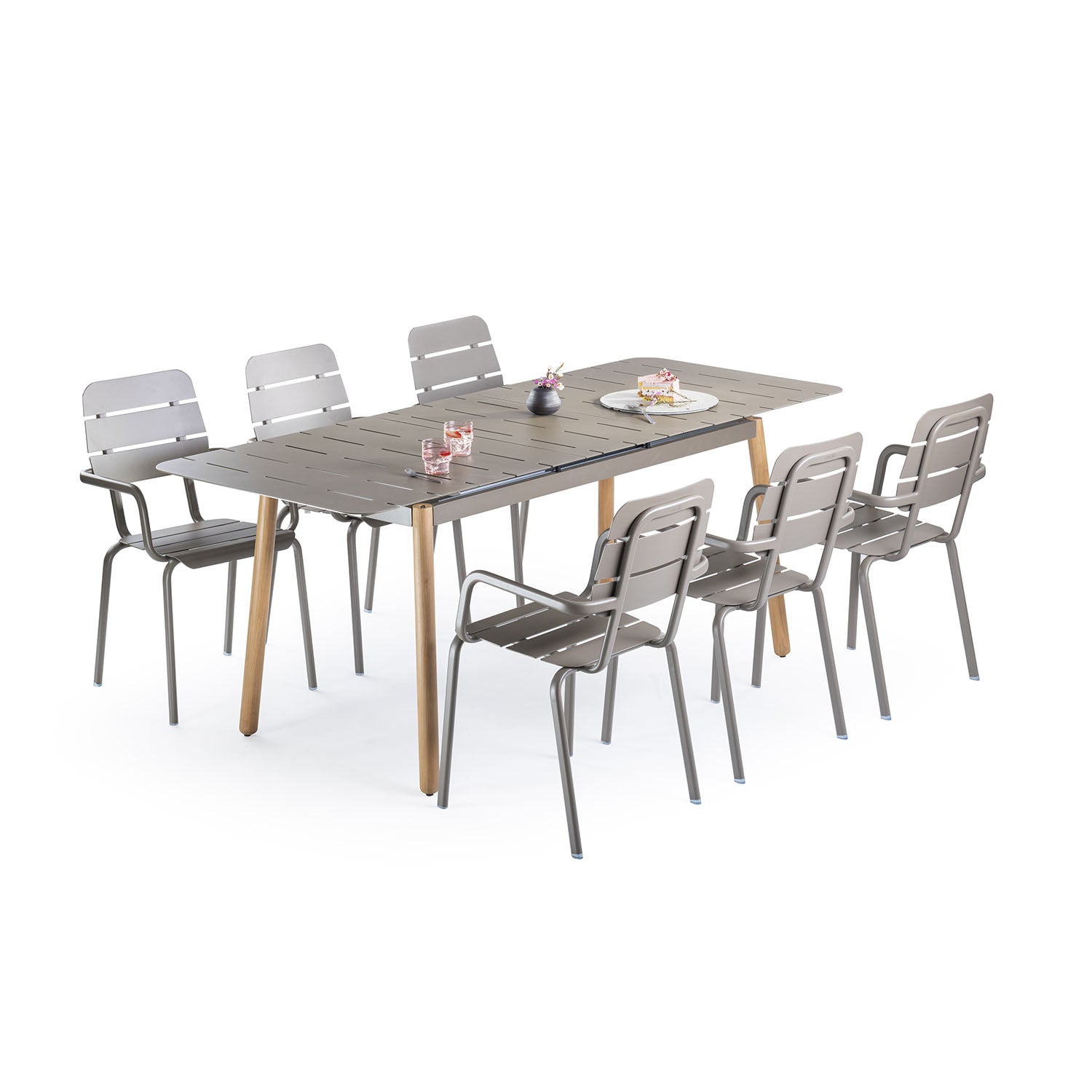 Stol Alicante 160/200 Moka na razvlačenje objedinjuje eleganciju, funkcionalnost i vrhunsku izdržljivost, što ga čini savršenim izborom za vanjsku i unutarnju upotrebu. Izrađen je od ojačanih aluminijskih ploča s prahom lakiranom završnom obradom u Moka boji, koja pruža otpornost na UV zrake, vodu i koroziju. Profinjeni izgled stola upotpunjuju noge od masivnog FSC tikovog drva, koje daju prirodnu toplinu i dozu luksuza. Zahvaljujući automatskom podiznom mehanizmu, stol se lako produžuje s 160 na 200 cm, omogućujući prilagodbu broju gostiju. Stabilna aluminijska konstrukcija jamči dug vijek trajanja i otpornost na vremenske uvjete, što omogućuje neprekidnu svakodnevnu upotrebu. Zbog svoje vrhunske kvalitete i profinjenog dizajna idealan je za privatne i javne prostore.