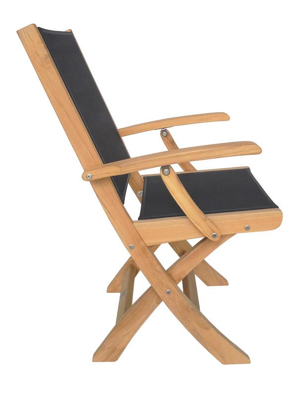 Stol Sydney F.A. kombinira masivnu tikovinu s vremenski otpornim crnim tekstilenom, što mu daje elegantan izgled i osigurava iznimnu izdržljivost. Stabilna i čvrsta konstrukcija omogućuje udobno sjedenje. Zahvaljujući kvalitetnom tekstilenu, stolac je udoban i bez dodatnih jastuka. Sklopivi dizajn omogućuje jednostavno spremanje i uštedu prostora, dok njegova čvrstoća čini ga prikladnim i za privatnu i za javnu upotrebu. Tikovina dolazi iz održivo upravljanih plantaža, što je čini ekološki prihvatljivim izborom.