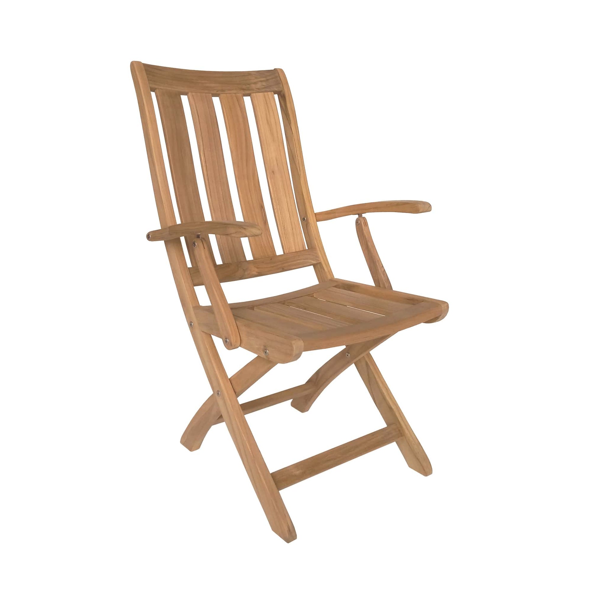 Stol je elegantan i funkcionalan izbor, izrađen od masivne tikovine, koja mu daje prirodan i profinjen izgled. Njegova stabilna i robusna konstrukcija osigurava dugotrajnost i udobnost pri sjedenju. Zahvaljujući sklopivom mehanizmu, zauzima malo prostora te omogućuje jednostavno spremanje i prenošenje. Zbog svoje čvrstoće i bezvremenskog dizajna, prikladan je kako za privatnu, tako i za javnu upotrebu – bilo u zatvorenom, na terasi ili u vrtu.