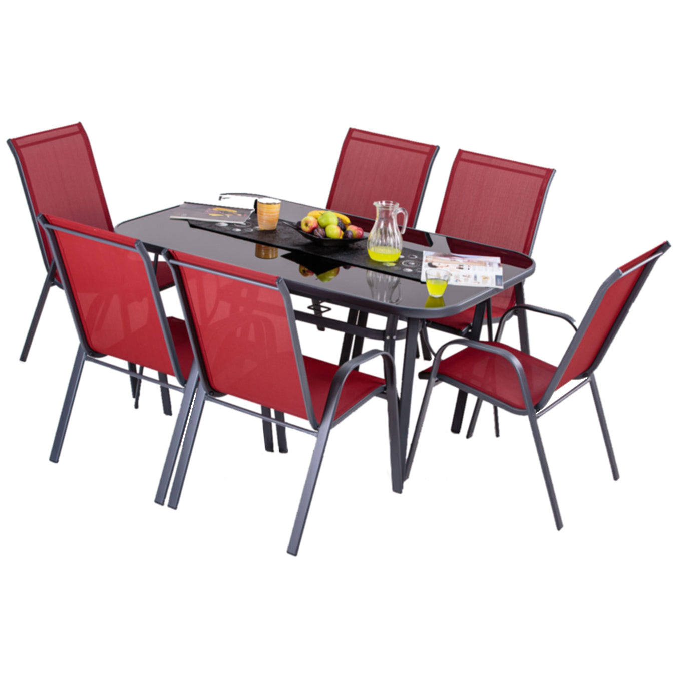 - Ploča stola: kaljeno staklo debljine 5mm s rupom za suncobran
